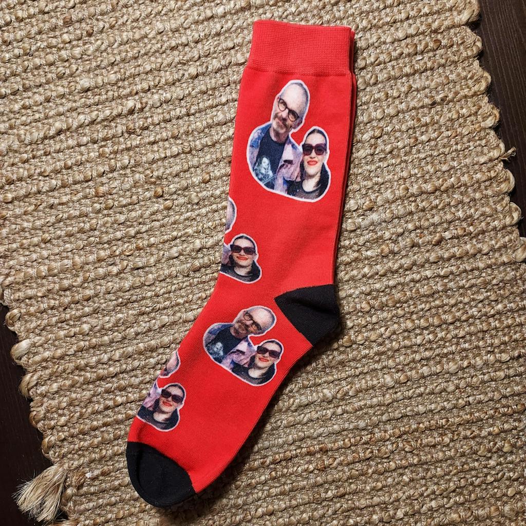 Sukista tuli tosi hienot; kuva näkyy hyvin, värit kirkkaat ja sukkien materiaali tuntuu laadukkaalta.