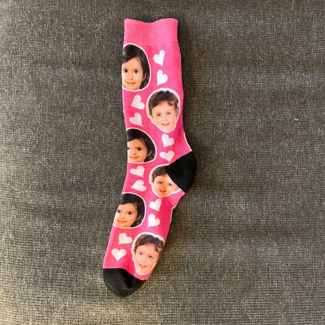 Sukat olivat loistavat. Ostin ne lahjaksi siskolle ja ne oli niin ihanat. Perheenjäsenet pääsivät kuvina hänen sukkiinsa.