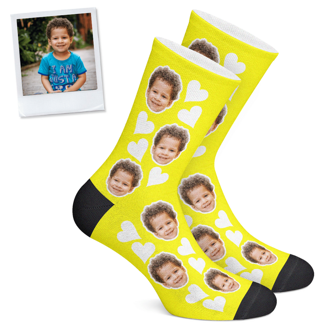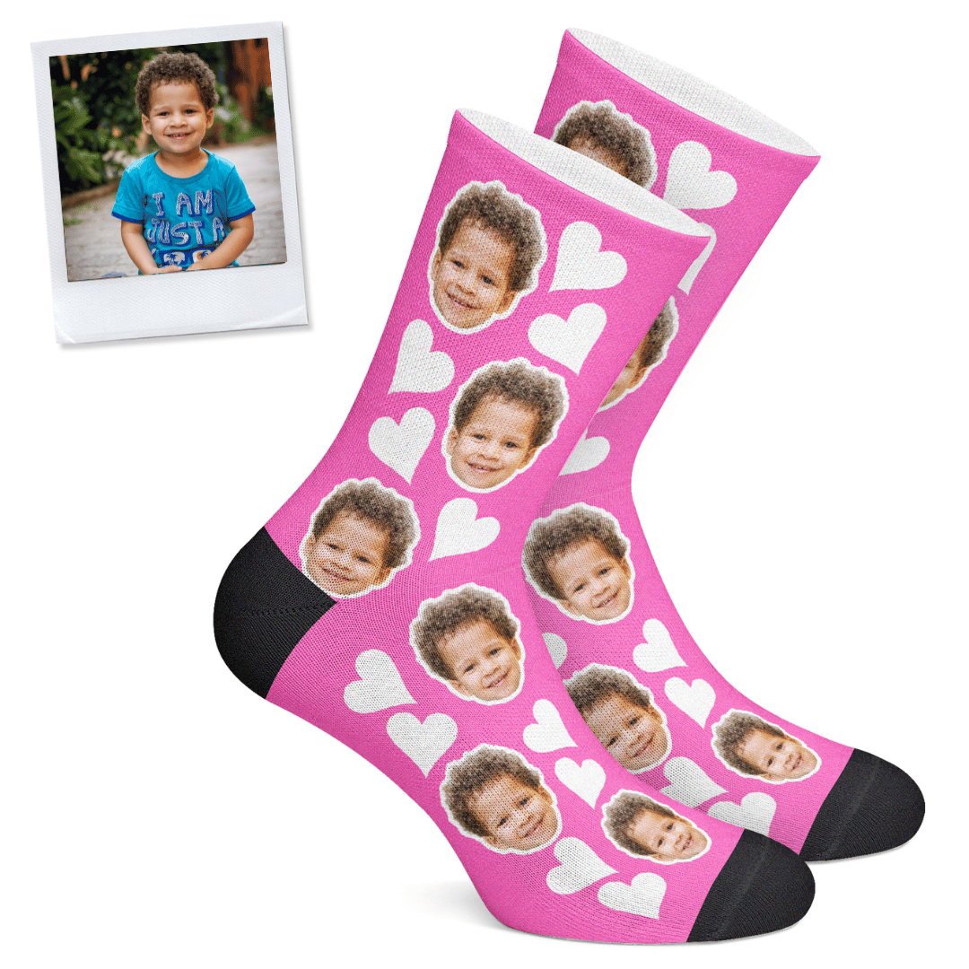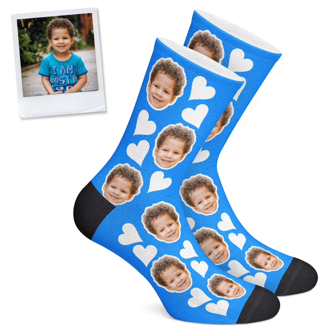 Voit laittaa sukkiin minkä tahansa kuvan; lapsi, koira, siili, moottoripyörä, mökki tai vaikka firman logo. Kaikki onnistuu! Lataa vain kuva, me hoidamme rajauksen ja suunnittelun. Jos haluat sukkiin enemmän kuin viisi eri kuvaa, ota meihin yhteyttä.