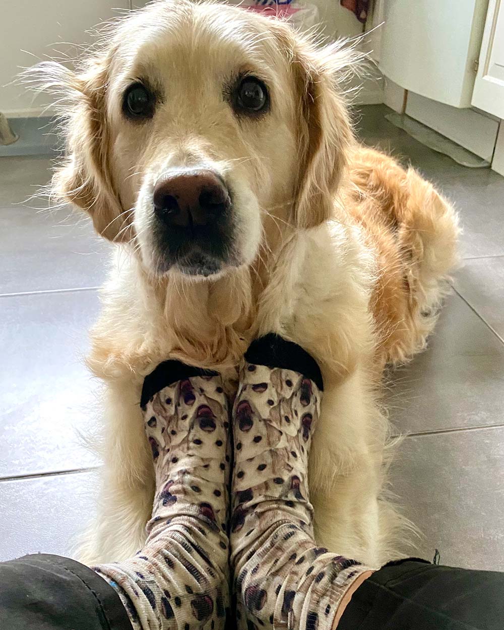 Hienot ja hyvän oloiset sukat, ja lähettämäni koiran kuva oli rajattu niinkuin halusin.